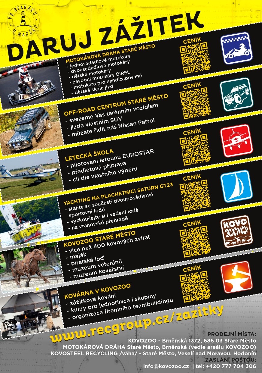 - platnost poukazů na off-road, letecká škola, yachting lze prodloužit, pro více informací nás kontaktujte zde: info@kovozoo.cz